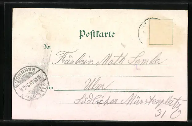 gelaufen 1899, Briefmarke entfernt, guter Zustand