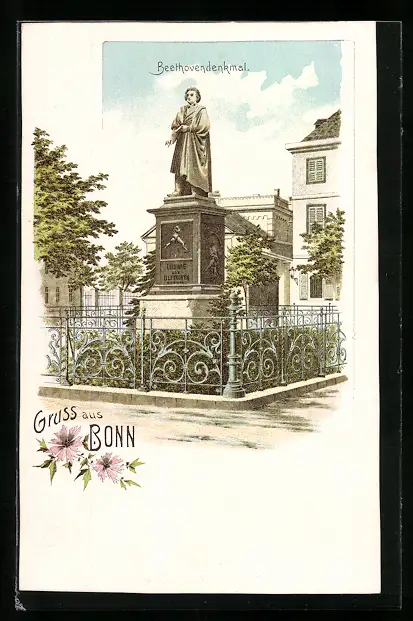 Lithographie Bonn, Blick zum Beethovendenkmal