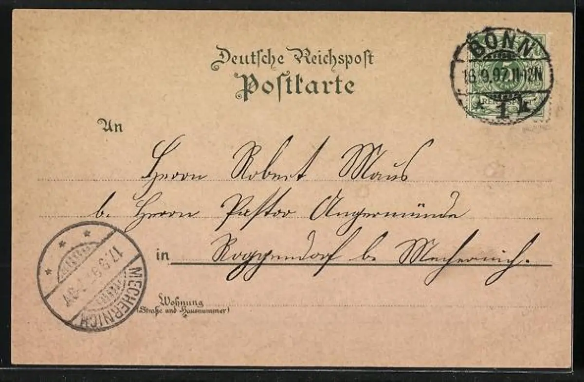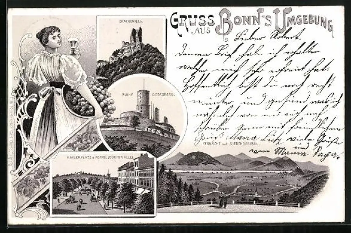 Lithographie Bonn, Drachenfels, Ruine Godesberg, Kaiserplatz