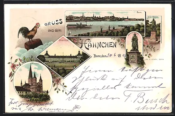 Lithographie Bonn, Gasthaus Hähnchen, Universität, Münster