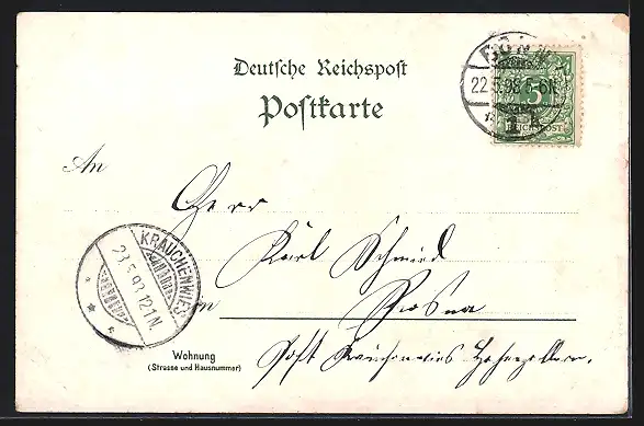gelaufen 1898, Ecken bestoßen, guter Zustand