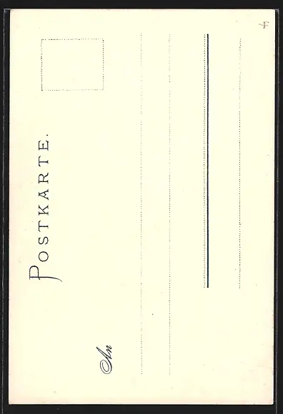 Personenbezogene Daten auf der Rückseite der Karte wurden durch blauen Textmarker unkenntlich gemacht. Die blauen Stellen sind auf die Vorderseite durchgeweicht und wirken sich negativ auf das Postkartenfoto aus