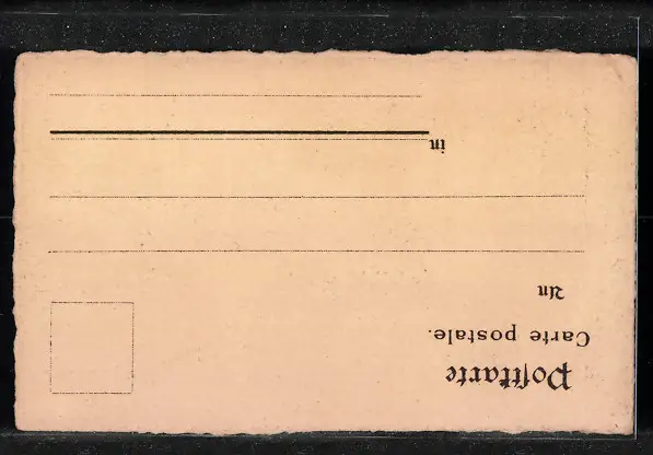 Personenbezogene Daten auf der Rückseite der Karte wurden durch blauen Textmarker unkenntlich gemacht. Die blauen Stellen sind auf die Vorderseite durchgeweicht und wirken sich negativ auf das Postkartenfoto aus