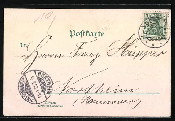 gelaufen 1903, Eckknick re. unten, guter Zustand