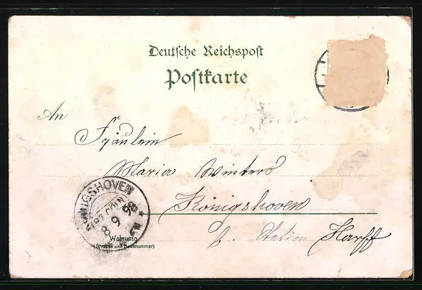 gelaufen 1898, Briefmarke entfernt, rückseitig Oberflächenschaden, guter Zustand