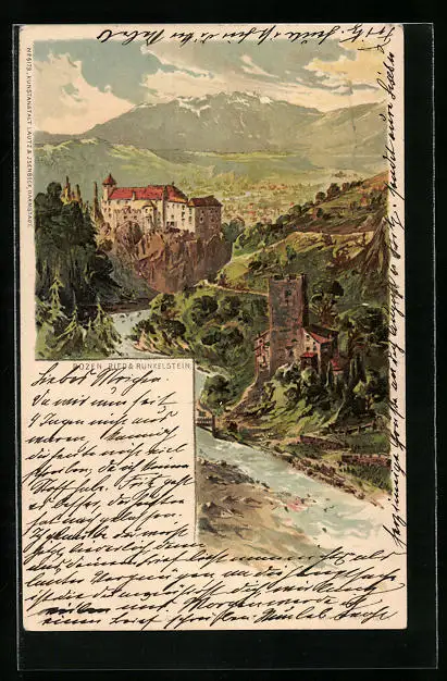 Lithographie Bozen, Die Schlösser Runkelstein und Ried