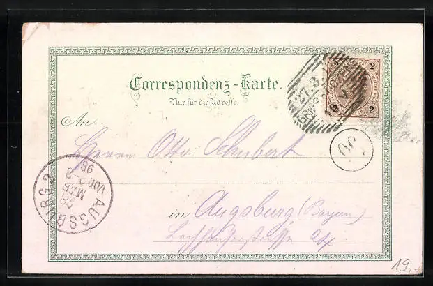 gelaufen 1898, Eckknick oben re., guter Zustand