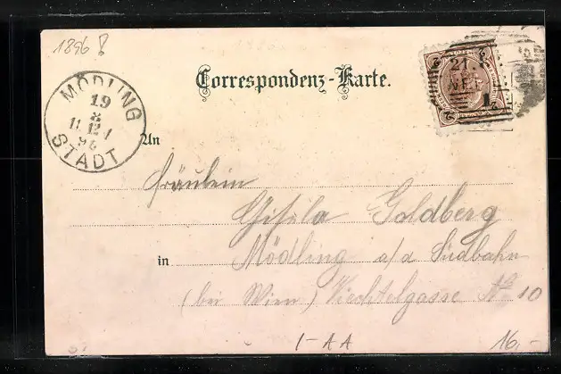 Personenbezogene Daten auf der Rückseite der Karte wurden durch blauen Textmarker unkenntlich gemacht. Die blauen Stellen sind auf die Vorderseite durchgeweicht und wirken sich negativ auf das Postkartenfoto aus