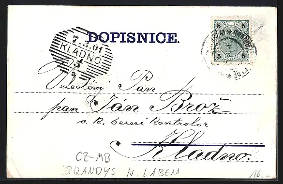 gelaufen 1901, Eckknick re. unten, guter Zustand