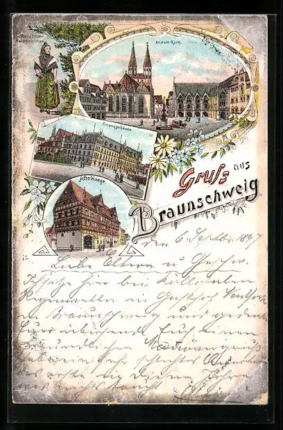 Lithographie Braunschweig, Altstadt-Markt, Finanzgebäude, Alte Waage