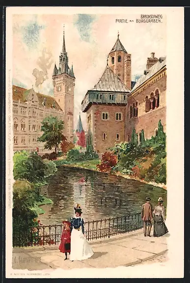 Lithographie Braunschweig, Partie am Burggraben