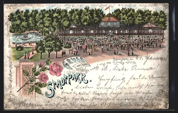 Lithographie Braunschweig, Restaurant Stadtpark mit Gästen