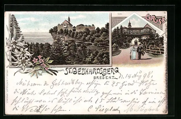 Lithographie Bregenz, Gasthaus auf dem St. Gebhardsberg