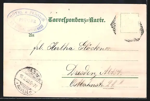 gelaufen 1900, Briefmarke entfernt, guter Zustand