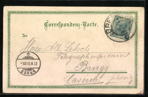 gelaufen 1904, Abriebspur u. Eckknick unten li., Stempelspur, guter Zustand