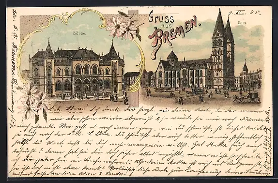 Lithographie Bremen, Dom, Börse im Passepartout