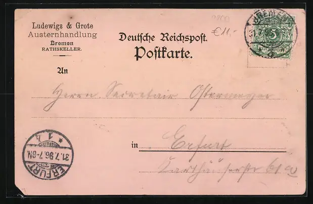 gelaufen 1896, Eckknicke oben, Eckschaden unten re., guter Zustand