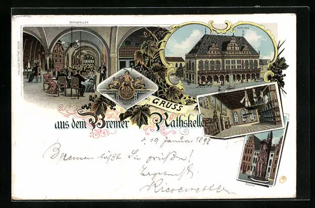 Lithographie Bremen, Gasthaus Ratskeller, Rathaus