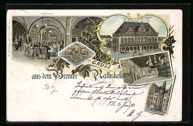 Lithographie Bremen, Gasthaus Ratskeller, Rathaus