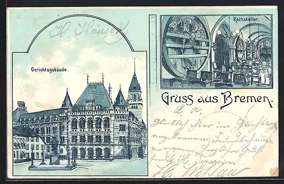 Lithographie Bremen, Gerichtsgebäude, Rathskeller