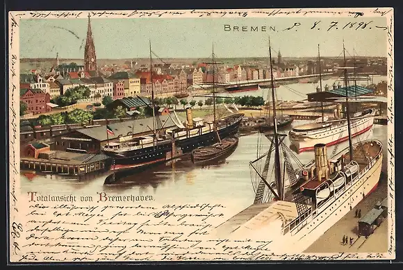 Lithographie Bremen, Totalansicht von Bremerhaven