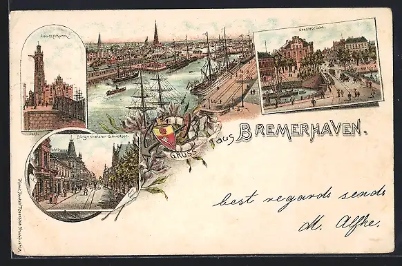 Lithographie Bremerhaven, Leuchtthurm, Geestebrücke