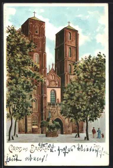Lithographie Breslau, Partie am Dom