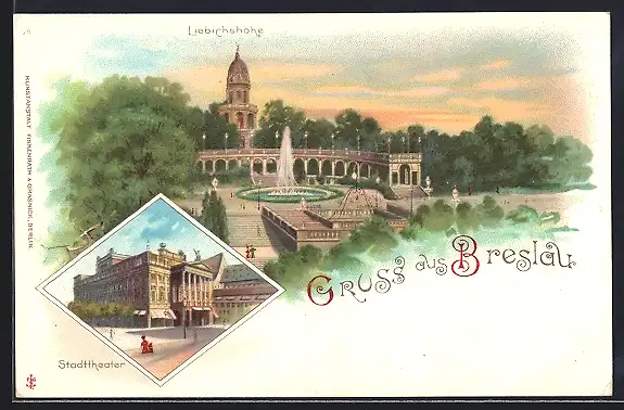 Lithographie Breslau, Stadttheater, Libichshöhe