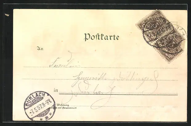 gelaufen 1897, rückseitig Oberflächenschaden, guter Zustand