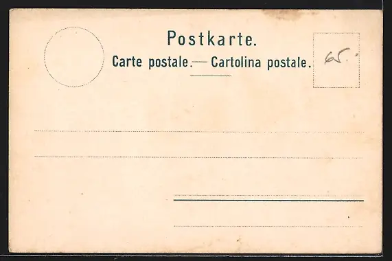 Personenbezogene Daten auf der Rückseite der Karte wurden durch blauen Textmarker unkenntlich gemacht. Die blauen Stellen sind auf die Vorderseite durchgeweicht und wirken sich negativ auf das Postkartenfoto aus