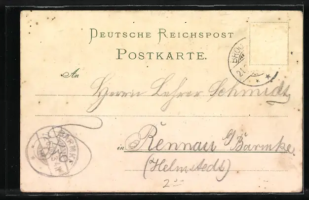 gelaufen 1900, Briefmarke entfernt, Bugspuren re. unten u. li. oben, guter Zustand