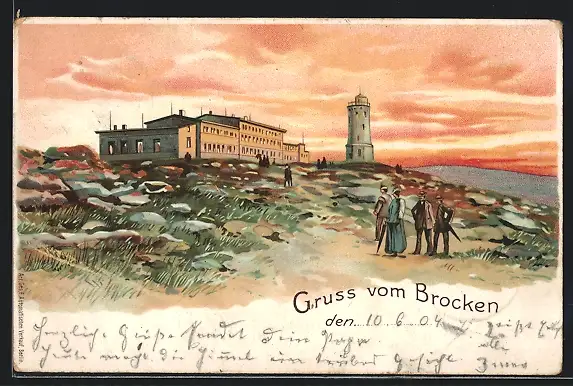 Lithographie Brocken, Brockenhotel mit Aussichtsturm
