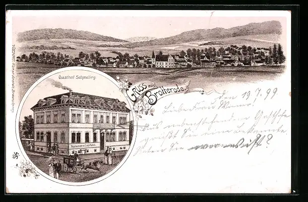 Lithographie Brotterode, Gasthof Schmeling, Totalansicht