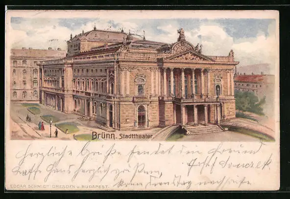Lithographie Brünn / Brno, Darstellung vom Stadttheater