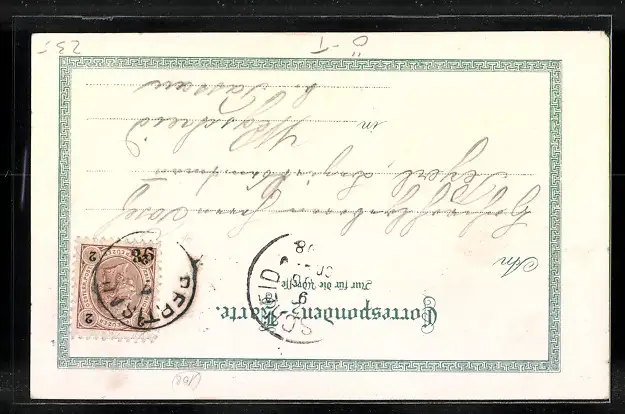 Personenbezogene Daten auf der Rückseite der Karte wurden durch blauen Textmarker unkenntlich gemacht. Die blauen Stellen sind auf die Vorderseite durchgeweicht und wirken sich negativ auf das Postkartenfoto aus