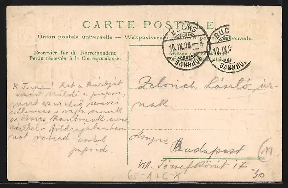 gelaufen 1906, Einriss und Eckknick li. oben, guter Zustand