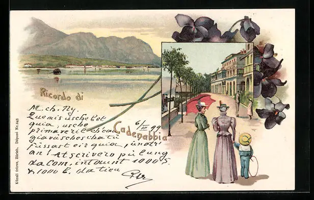 Lithographie Cadenabbia, Teilansicht, Strassenpartie