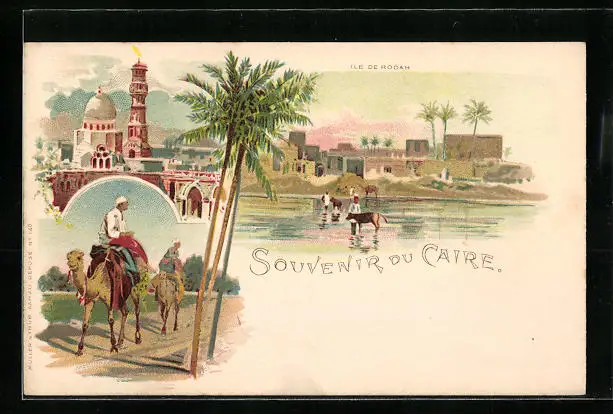 Lithographie Cairo, Ile de Rodah