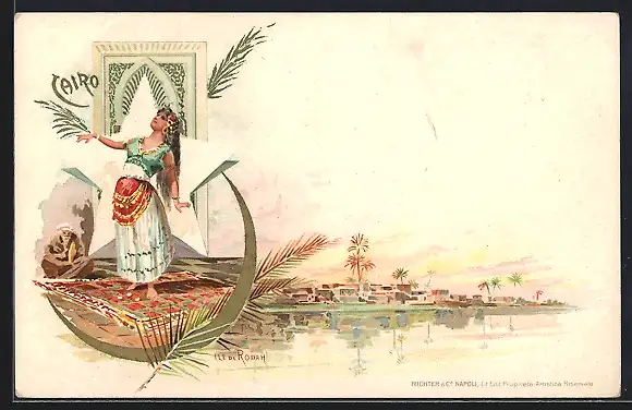 Lithographie Cairo, Ile de Rodah, Tänzerin