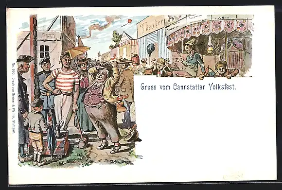 Lithographie Cannstatt, Hau den Lukas auf dem Cannstatter Volksfest