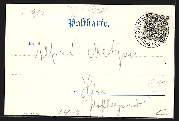 Ein Angebot in Ansichtskarten Soziales Leben: Volksfeste - 2.498 weitere Angebote in dieser Kategorie