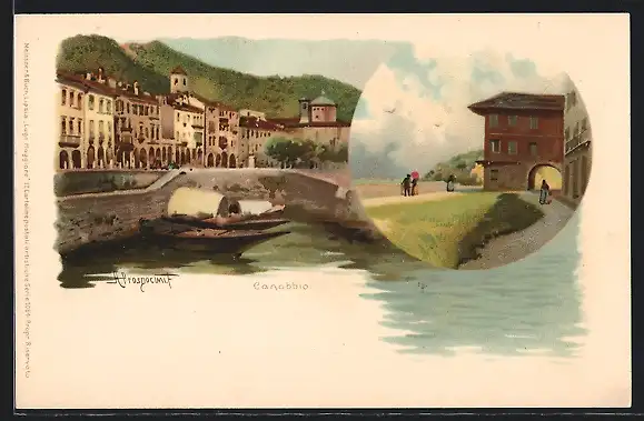 Lithographie Canobbio, Strassenpartie am Wasser