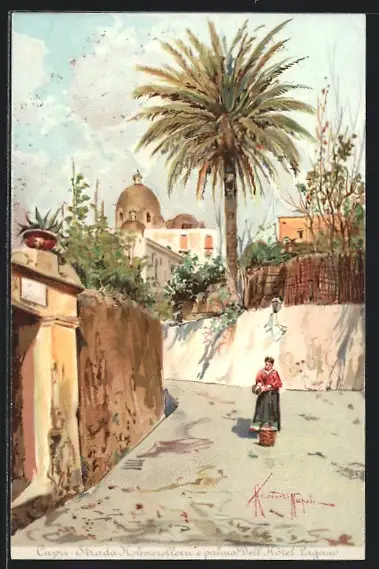 Lithographie Capri, Strada Hohenzollern e Palma dell`Hotel Pagano