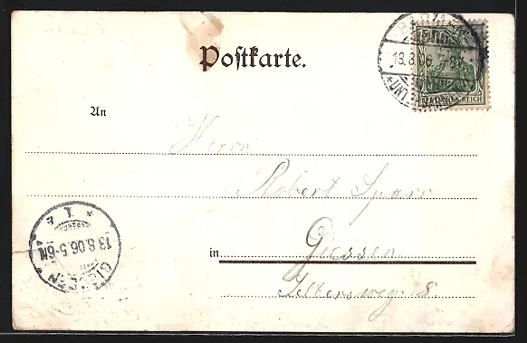 gelaufen 1906, Eckknick li. oben, Bugspur re., guter Zustand