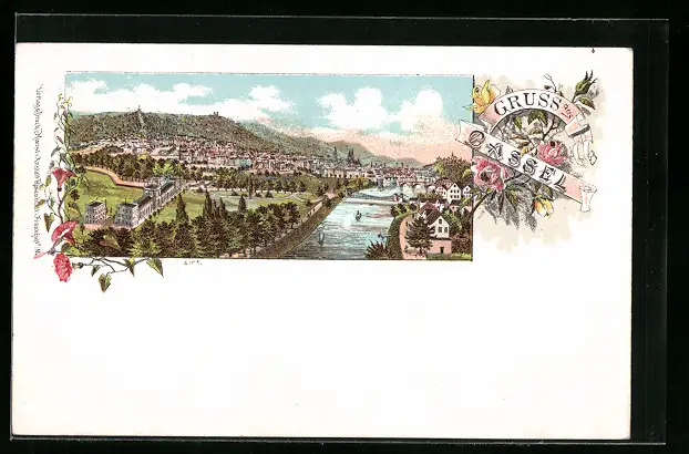 Lithographie Cassel, Totalansicht mit Fulda