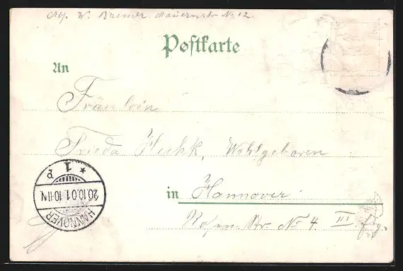 gelaufen 1901, Briefmarke entfernt, guter Zustand