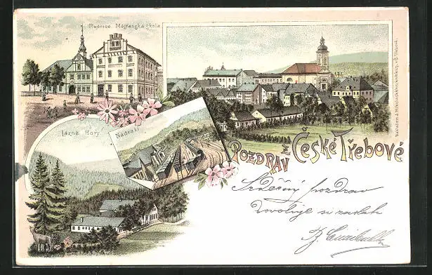 Lithographie Ceska Trebova, Nadrazi, Radnice, Lazne Hory