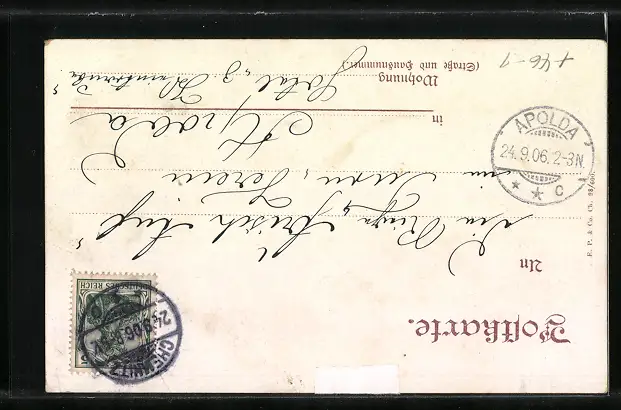 gelaufen 1906, rückseitig Klebe- und Papierreste, guter Zustand