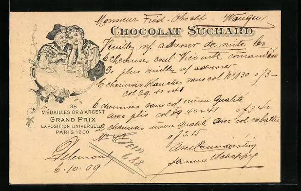 Lithographie Chocolat Suchard, Damenrunde mit Kakao