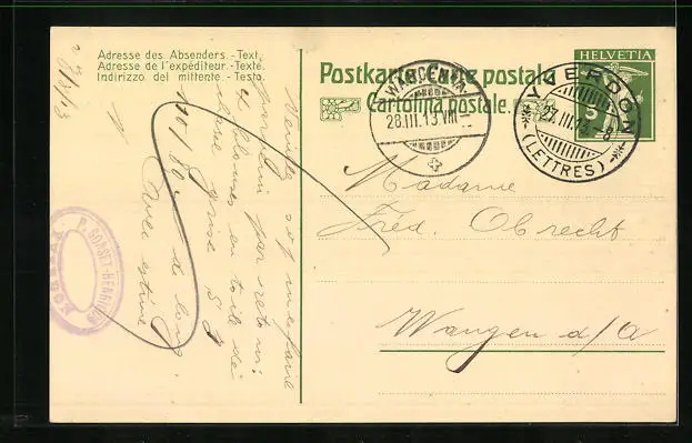 gelaufen 1913, Eckknick unten re., guter Zustand